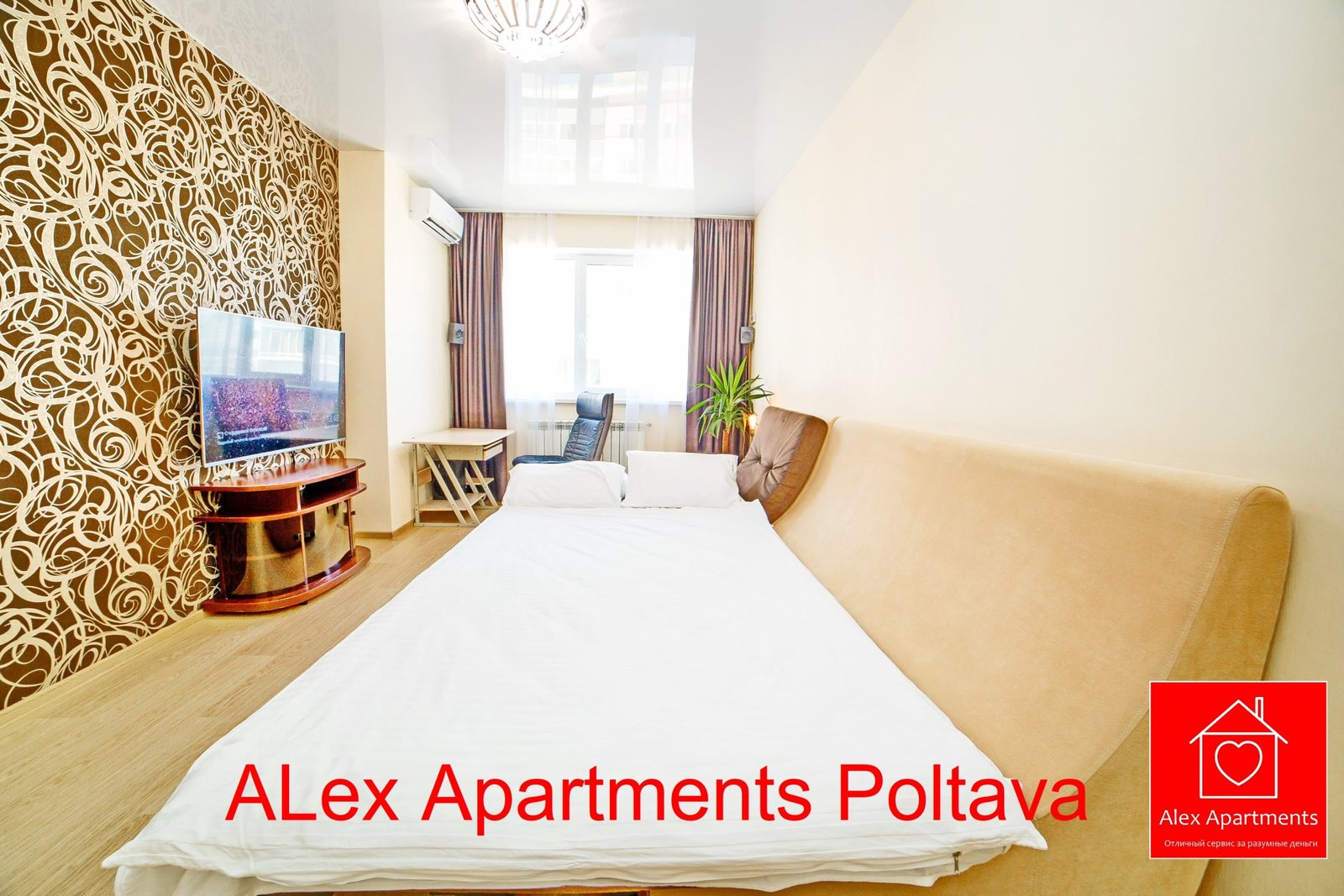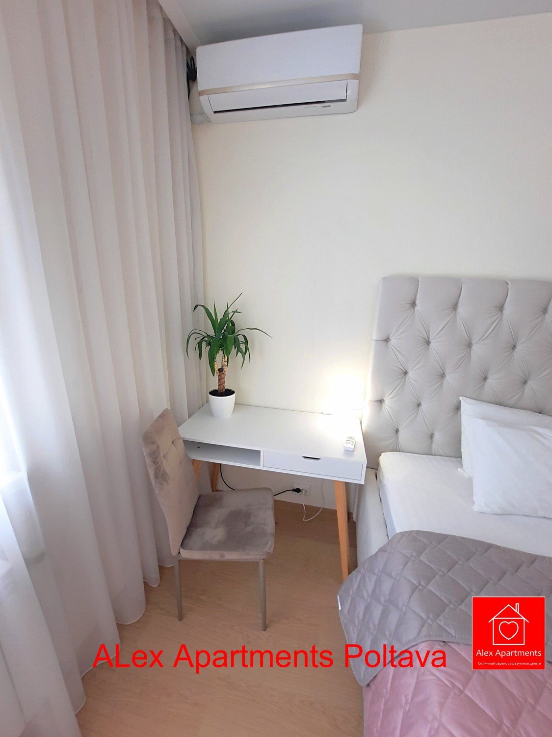 • Білосніжна постіль з сатину 100% бавовни. • Smart TV 43” + YouTube. • Кондиціонер. • Письмовий стіл.