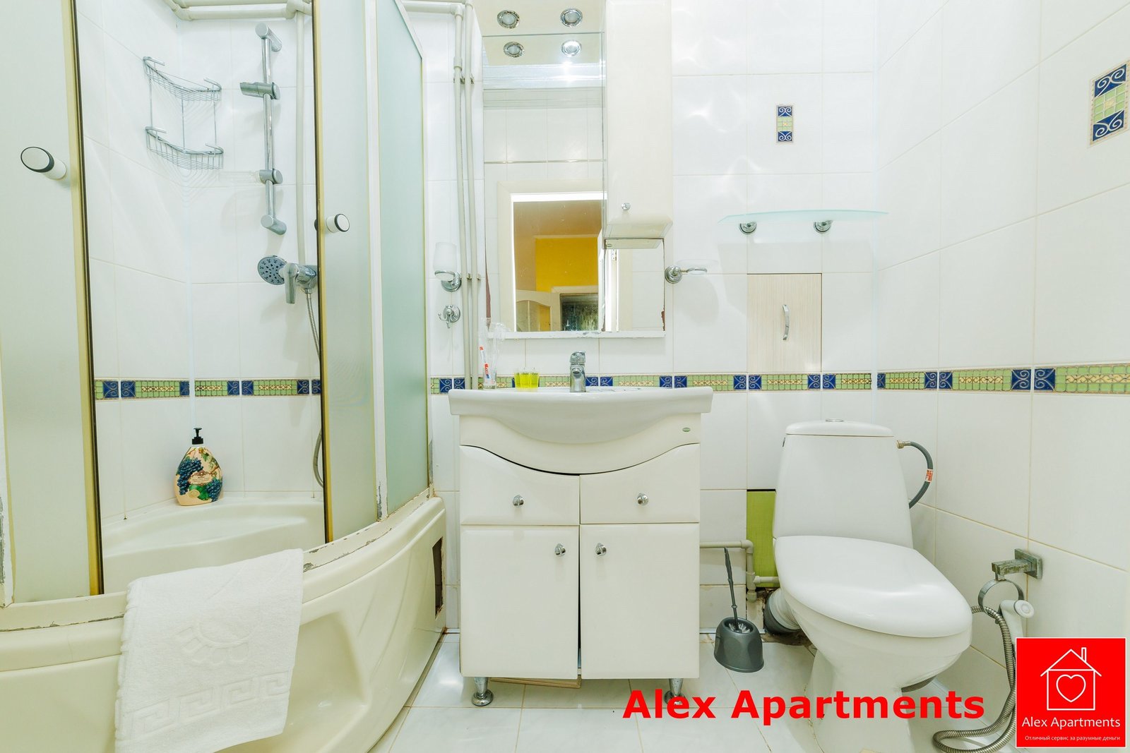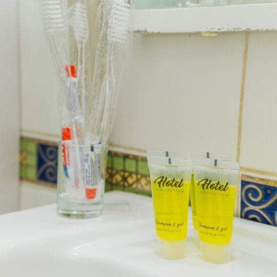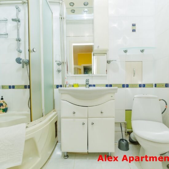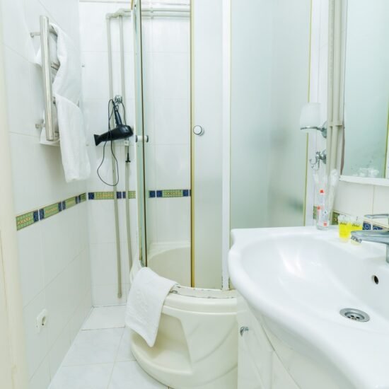 • Власна ванна кімната: Душова кабіна. Електричний бойлер, гаряча вода 24/7. Потужний фен. Сніжно-білі рушники та гігієнічні набори (шампунь, гель, зубна щітка, паста). Туалет суміщений.