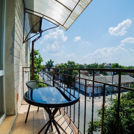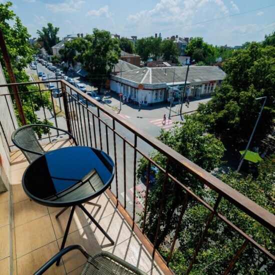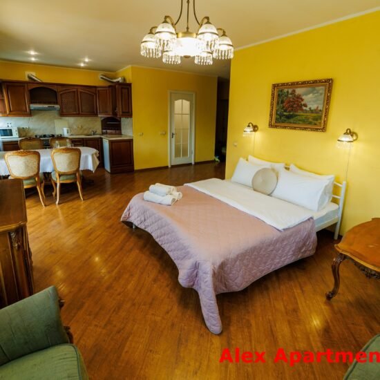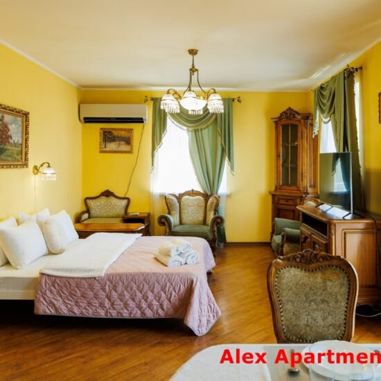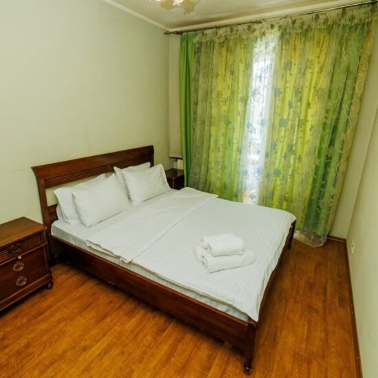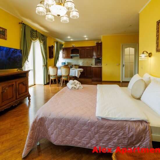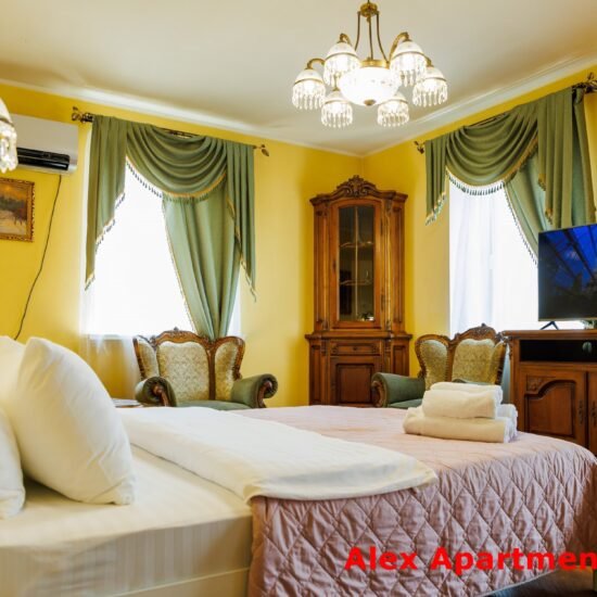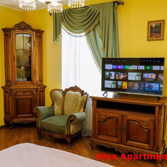 • Спальня 2: Ліжко велике King-size. Білосніжна постіль з сатину 100% бавовни. • Smart TV 43” + YouTube. • Кондиціонер. Відкритий балкон із видом у двір.